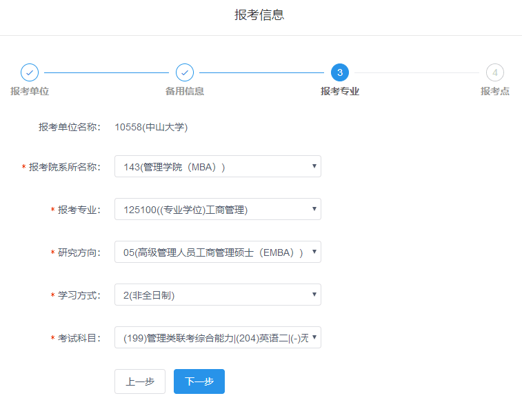 1) 考生来源:按实际情况填写,一般情况下,报考MBA/EMBA的考生选择“其他在职人员”即可,报考MPAcc/MF/MAud的考生按实际情况选择;